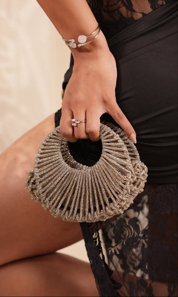 Shop Atriya’s new Timeless Thread Collection: premium handcrafted bags in different trendy shapes, with crystal details, pearl finishes, and versatile designs perfect for bridal, festive, party wear, and western fashion.