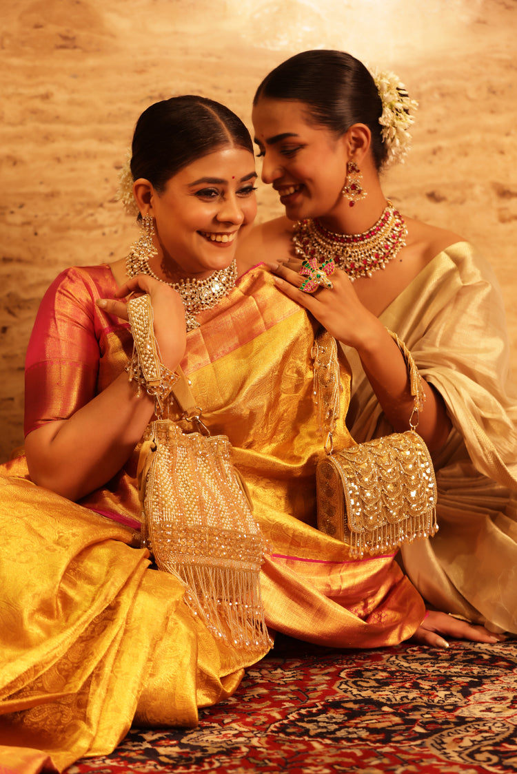 Every bag tells a story. Explore our curated picks of handcrafted, versatile handbags, thoughtfully selected to complement bridal, festive, and modern fashion.