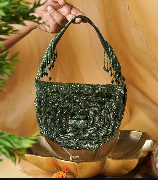 This elegant pearl bag features intricate beading with a luxurious fringe detail, giving it a...