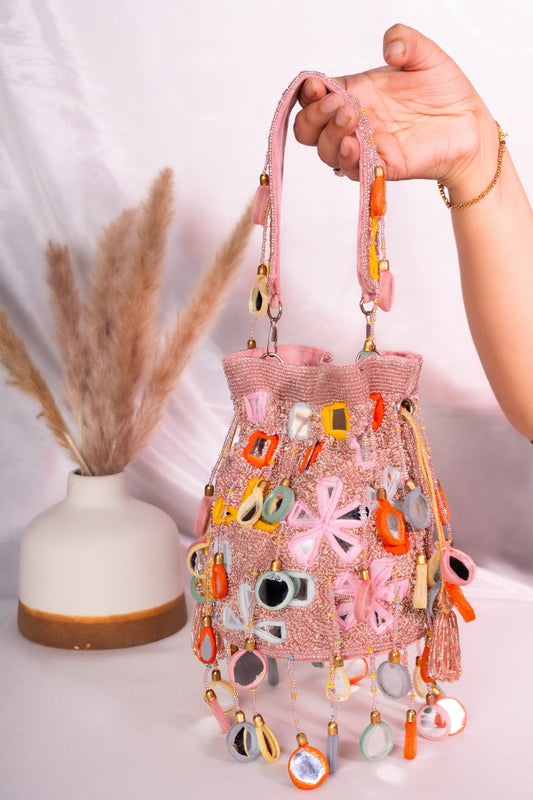Embrace opulence with our Majestic Mirror Golden Potli, a masterpiece of elegance and craftsmanship. Handcrafted...