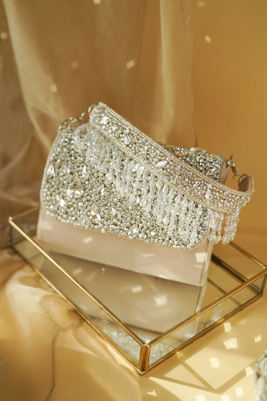 Elegance Entwined with GraceThe Zarina Potli is your go-to for regal occasions—an ethereal accessory hand-embellished...