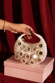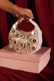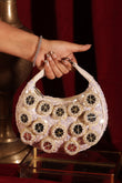 Its iconic crescent silhouette pairs beautifully with traditional ensembles, especially silk sarees, Kanjivarams, Banarasis, lehengas, and classic Indian outifts. Lightweight, timeless, and effortlessly elegant, this bag is designed for women who appreciate heritage craftsmanship with a modern touch. Perfect for weddings, festive functions, temple ceremonies, and grand celebrations.