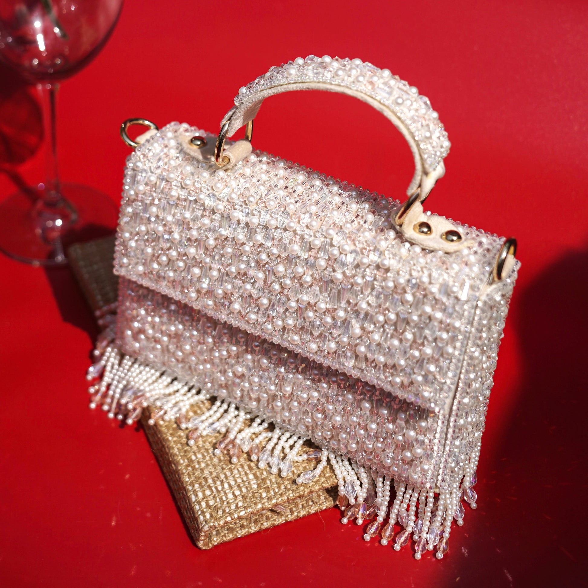 Our beaded bags are handcrafted with delicate embellishments and intricate detailing. Slight variations in bead placement, color, or finish are natural and reflect the unique, artisanal quality of each piece.