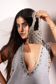 The Diva Mini Bag is a compact, handcrafted accessory designed for refined elegance. Adorned with premium rhinestones and crystal embellishments, it catches the light beautifully to create a sophisticated shimmer. Perfect for evening occasions, parties, or special events, this mini bag combines practicality with glamorous style. Its compact silhouette fits essentials while making a statement, adding sparkle to sarees, lehengas, Indo-western, or contemporary outfits. A versatile accessory that seamlessly transitions from casual gatherings to formal celebrations.