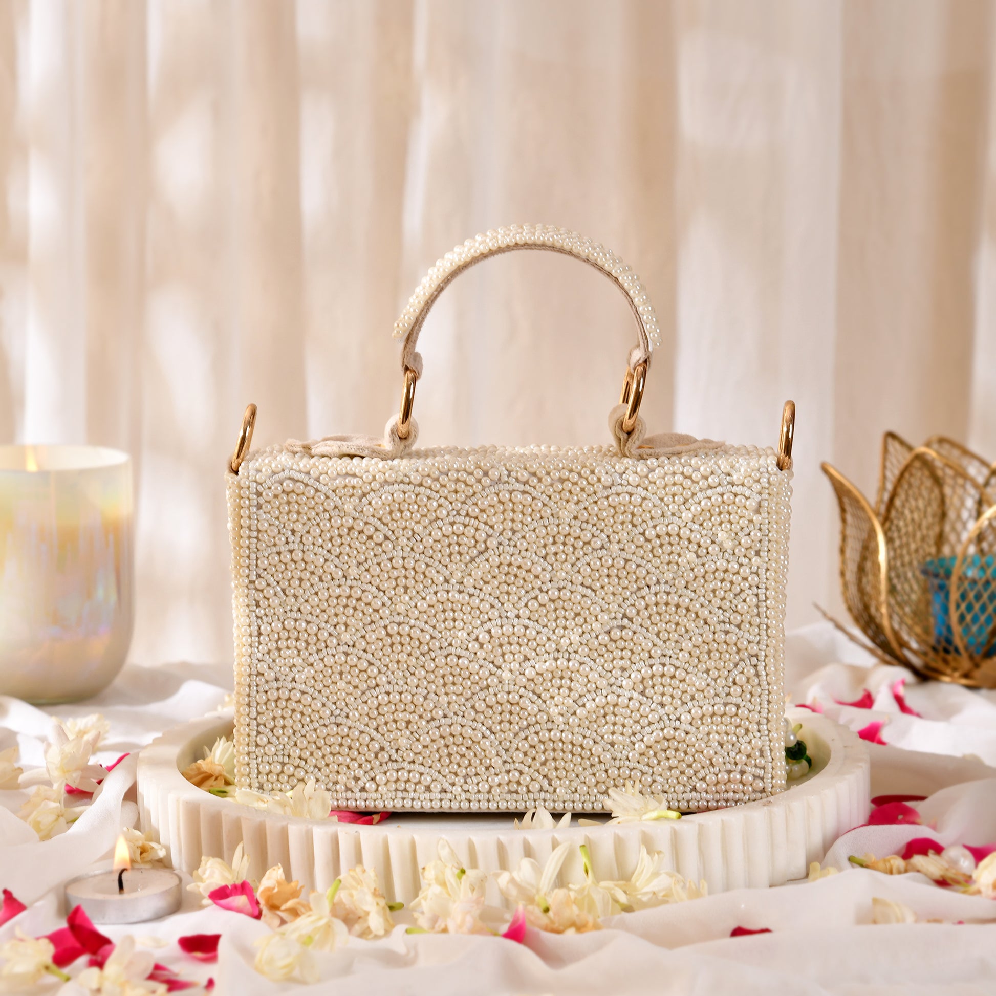 Our beaded bags are handcrafted with delicate embellishments and intricate detailing. Slight variations in bead placement, color, or finish are natural and reflect the unique, artisanal quality of each piece.