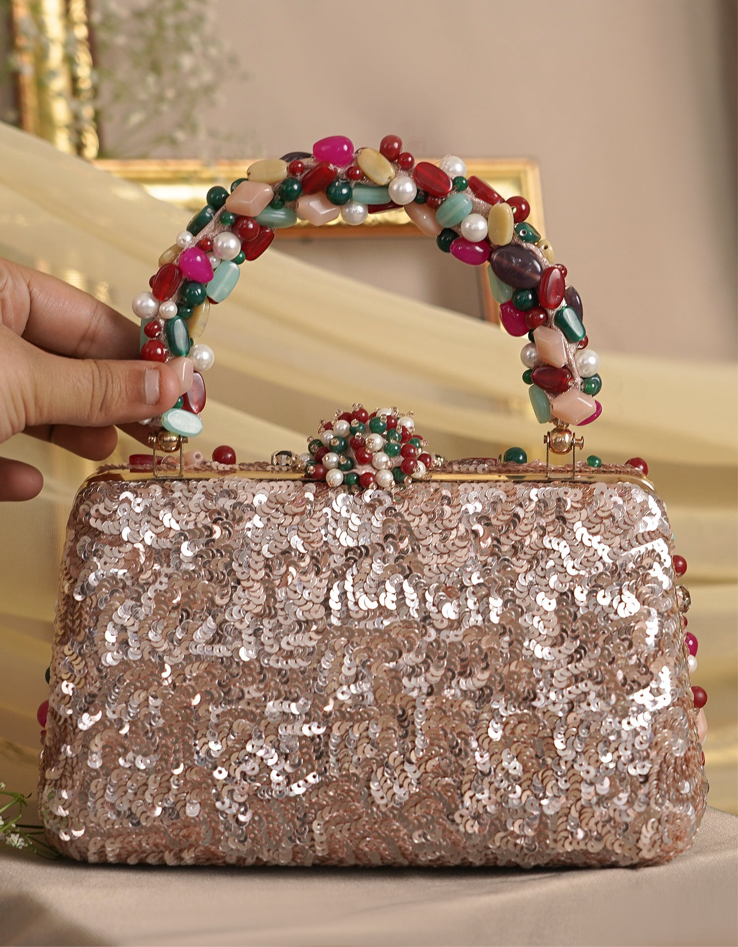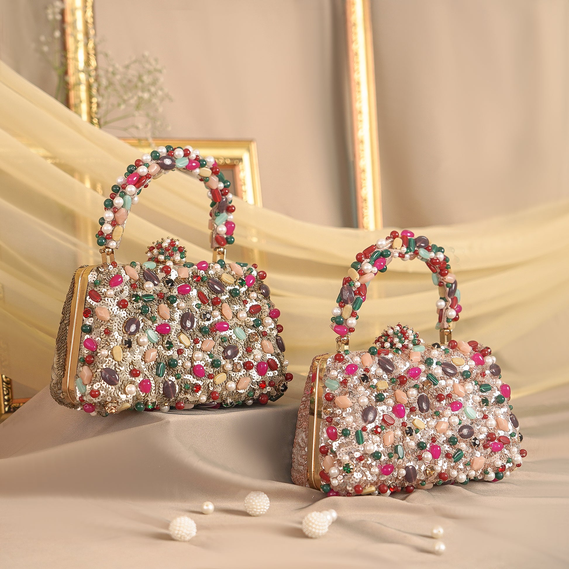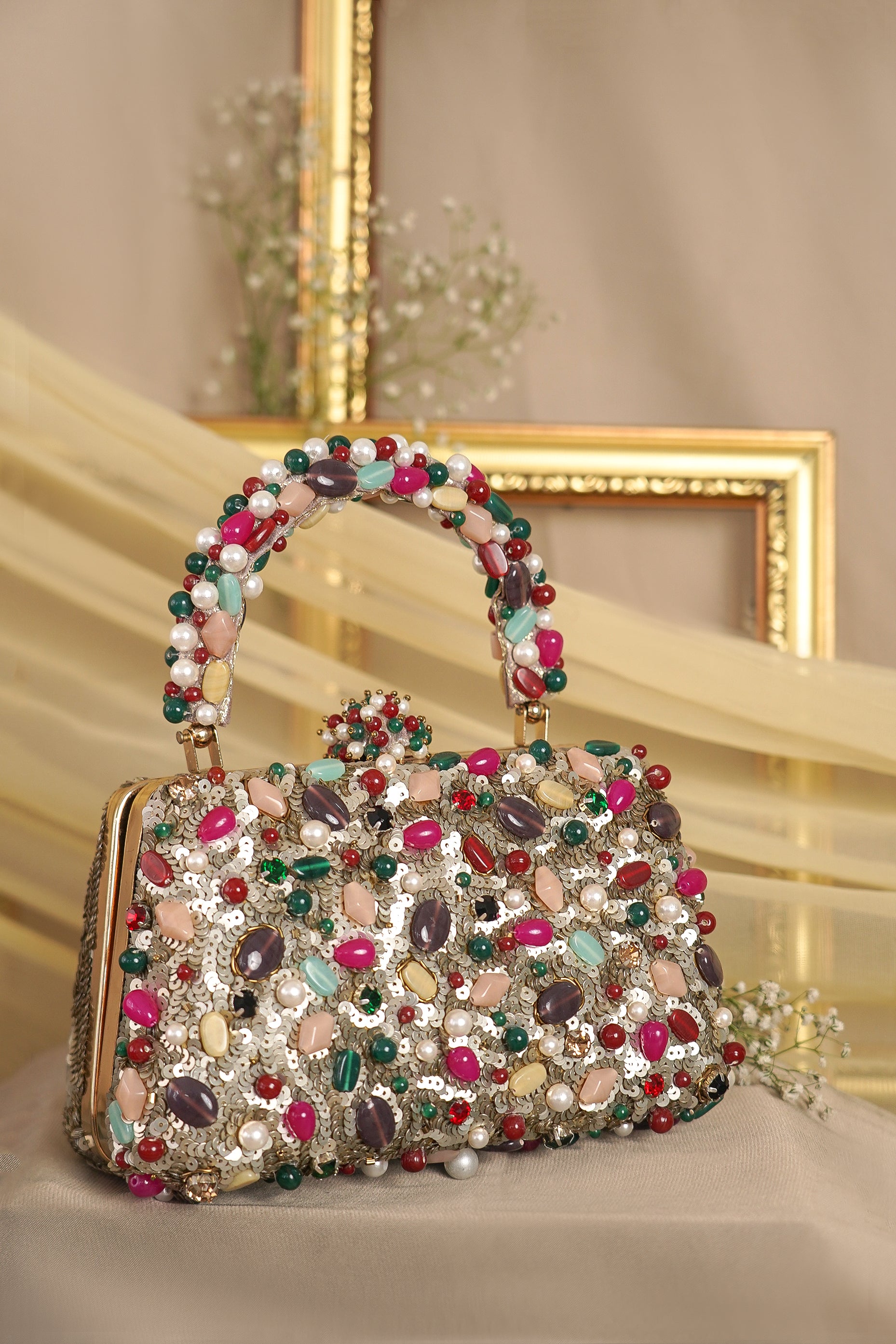 Disclaimer: Our beaded bags are handcrafted with delicate embellishments and intricate detailing. Slight variations in bead placement, color, or finish are natural and reflect the unique, artisanal quality of each piece.