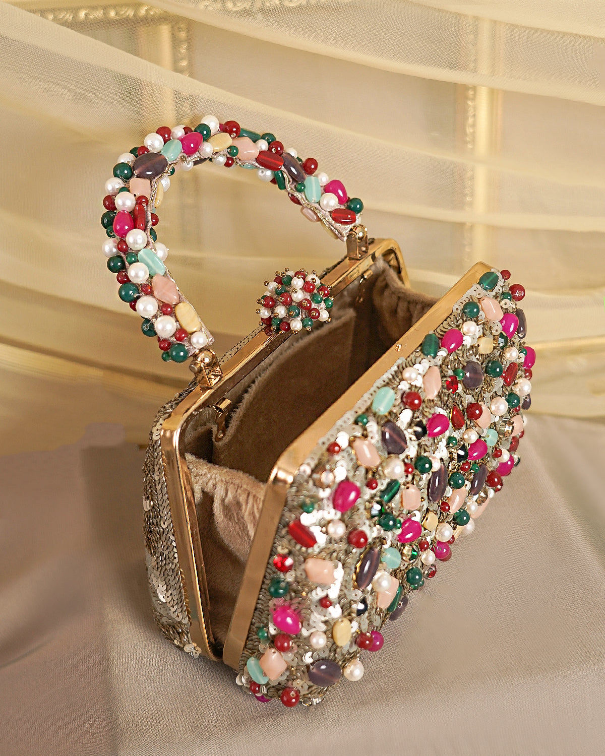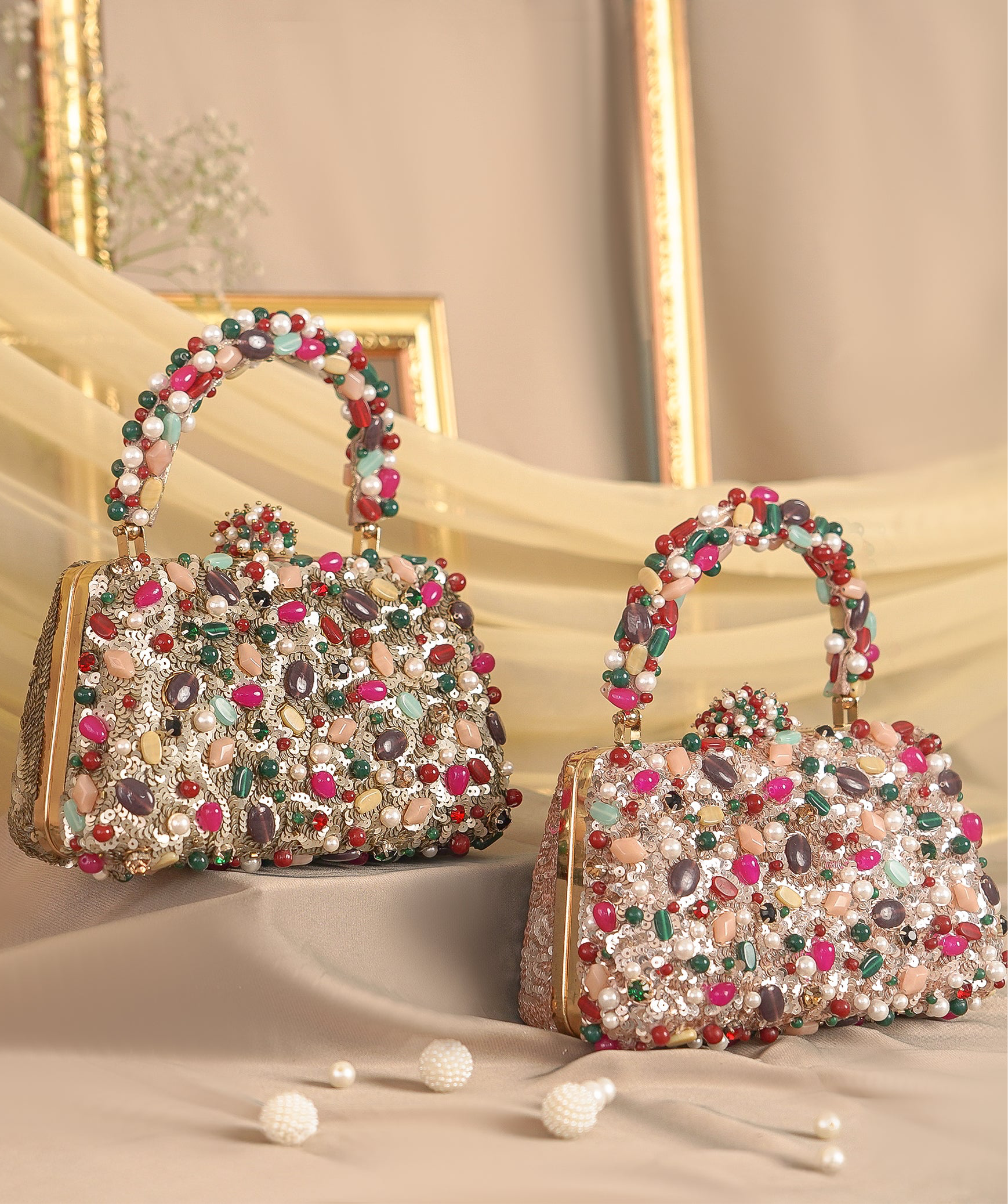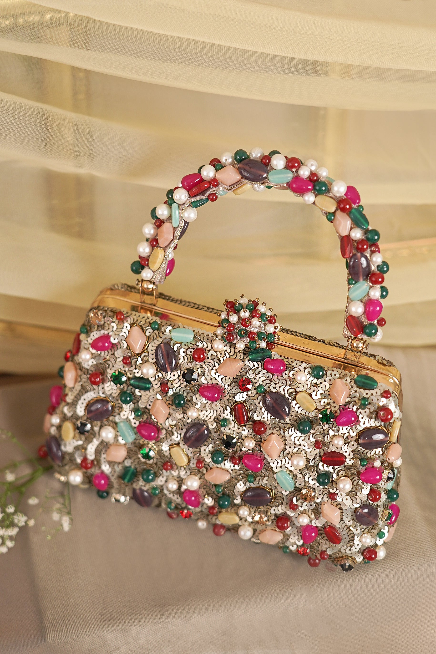 Disclaimer: Our beaded bags are handcrafted with delicate embellishments and intricate detailing. Slight variations in bead placement, color, or finish are natural and reflect the unique, artisanal quality of each piece.