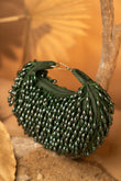 This handcrafted shoulder bag captures coastal elegance with its textured, shell-like beaded detailing and crescent silhouette. Its tactile beauty and natural tones make it a perfect companion for resort escapes, sundowner events, or summer weddings.