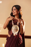 Celebrate color and craftsmanship with The Meenakari Mandala Bag. This unique round clutch is a dazzling statement, meticulously handcrafted and fully adorned with an intricate mosaic of multicolor stones. The pattern radiates outward, reminiscent of a mesmerizing mandala, bringing sacred geometry and vibrant artistry to your wardrobe.
