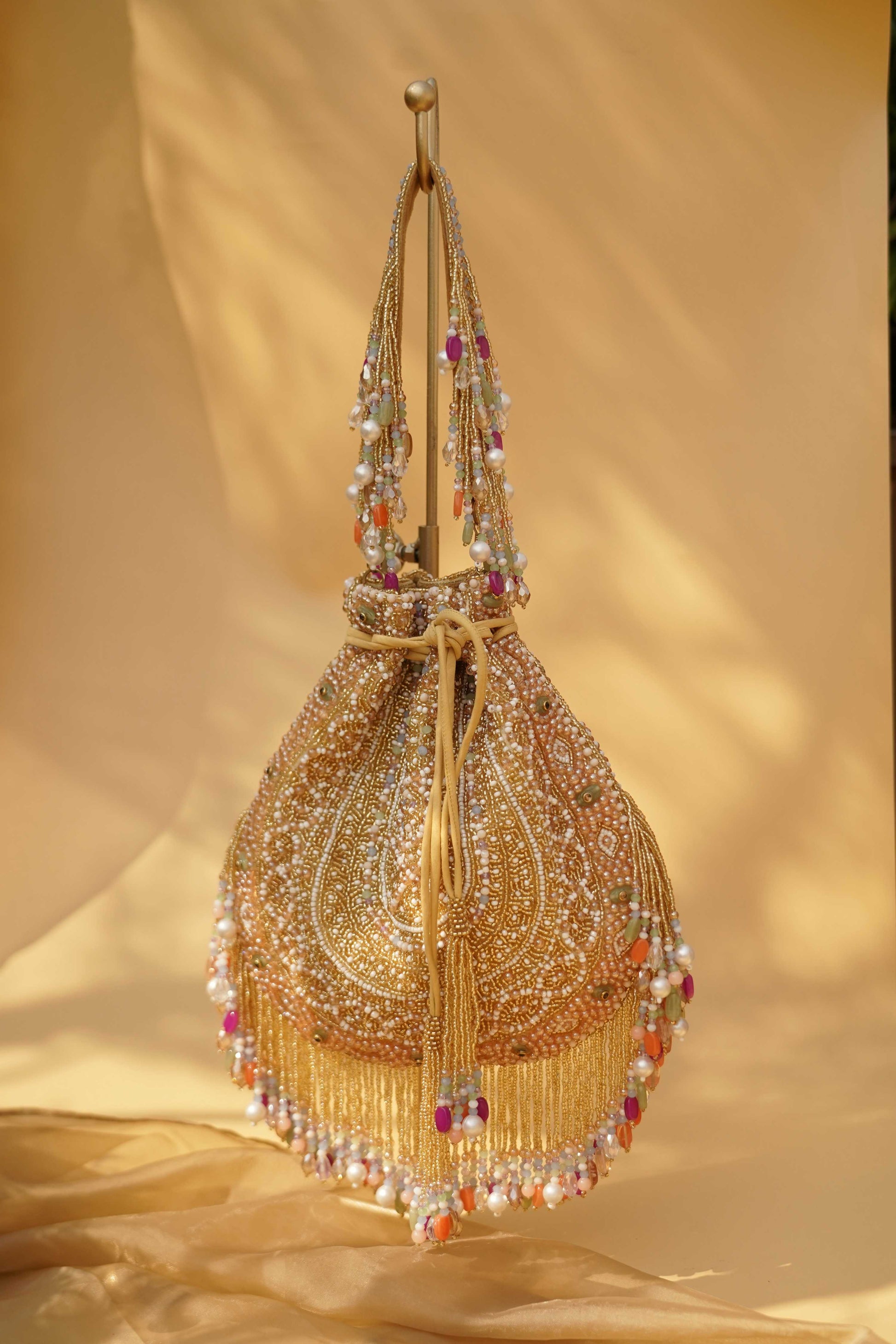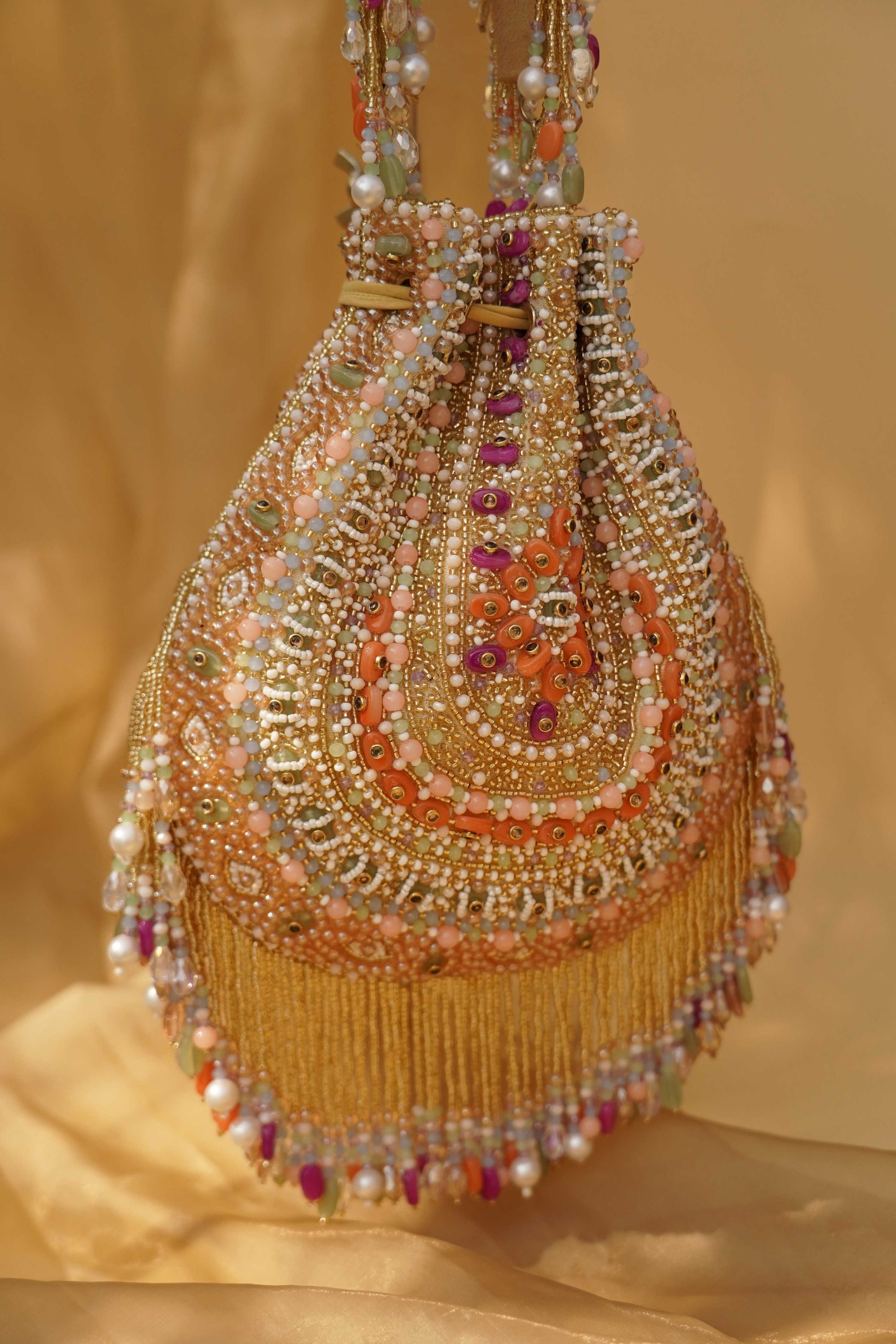 Our beaded bags are handcrafted with delicate embellishments and intricate detailing. Slight variations in bead placement, color, or finish are natural and reflect the unique, artisanal quality of each piece.
