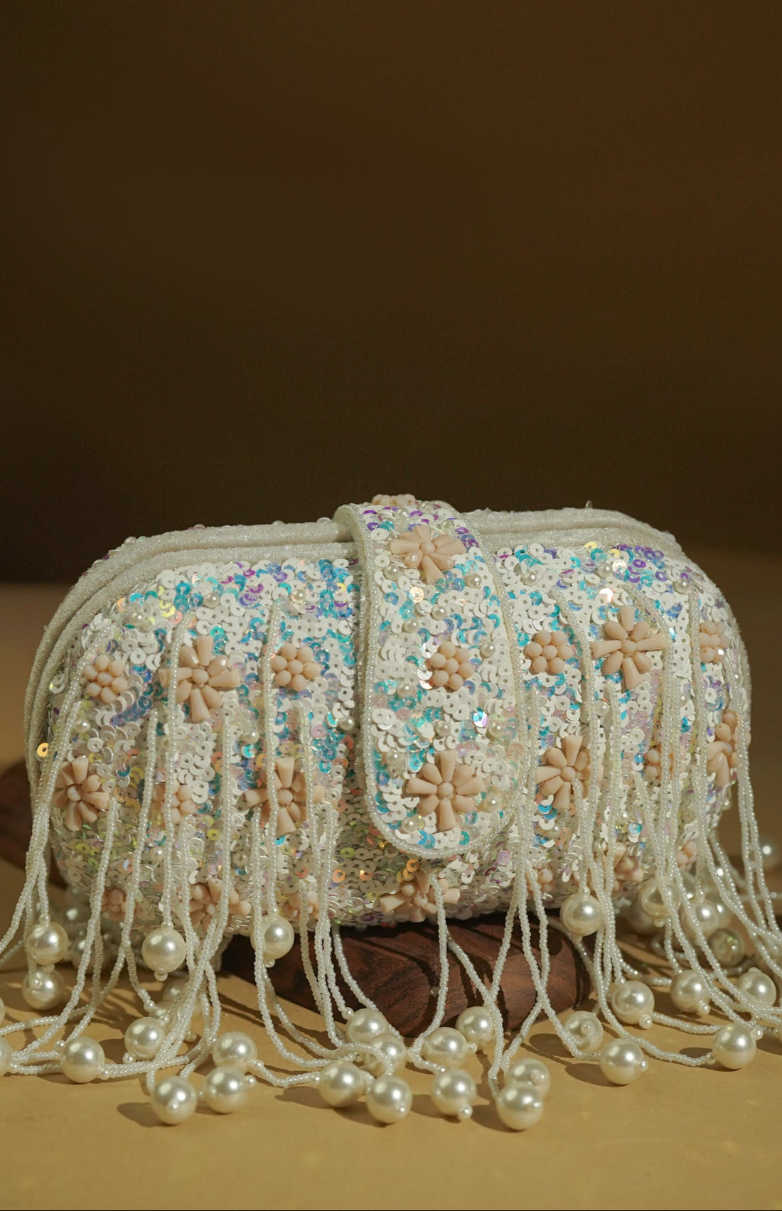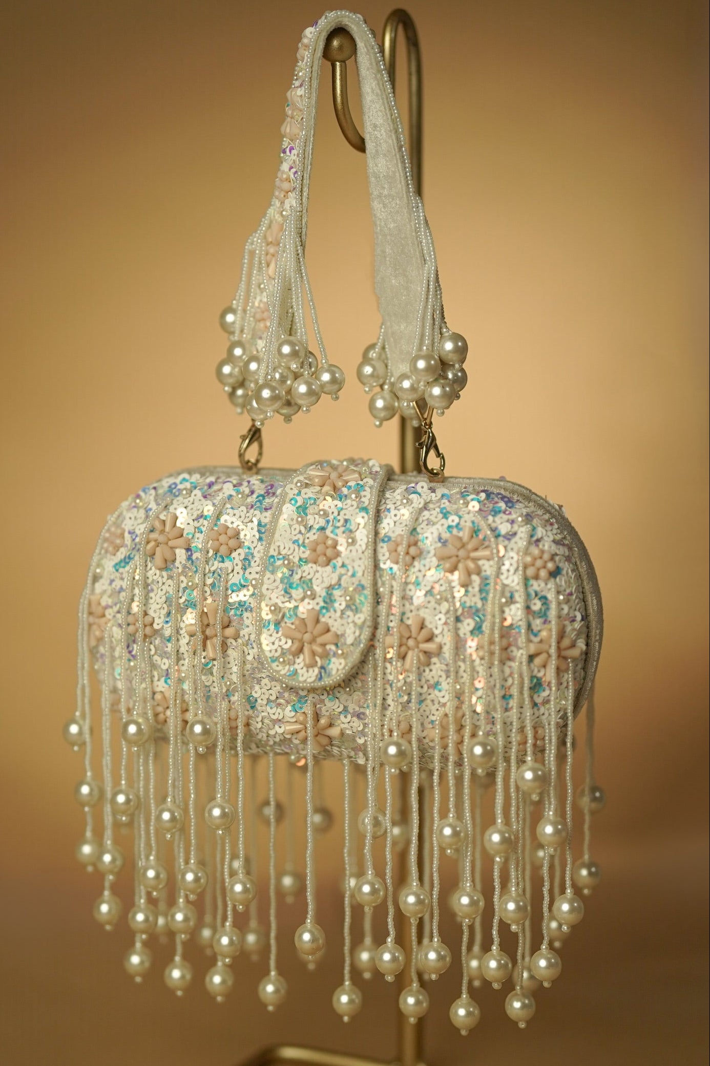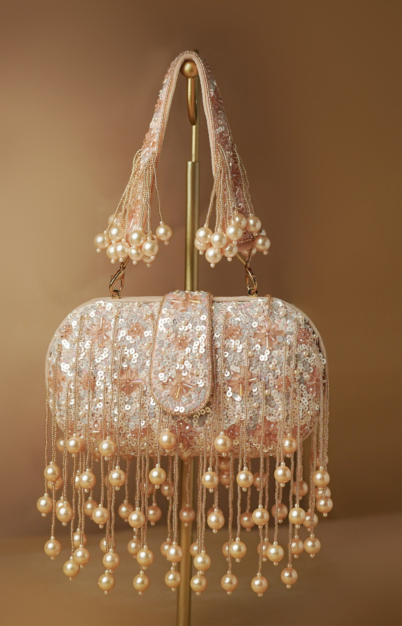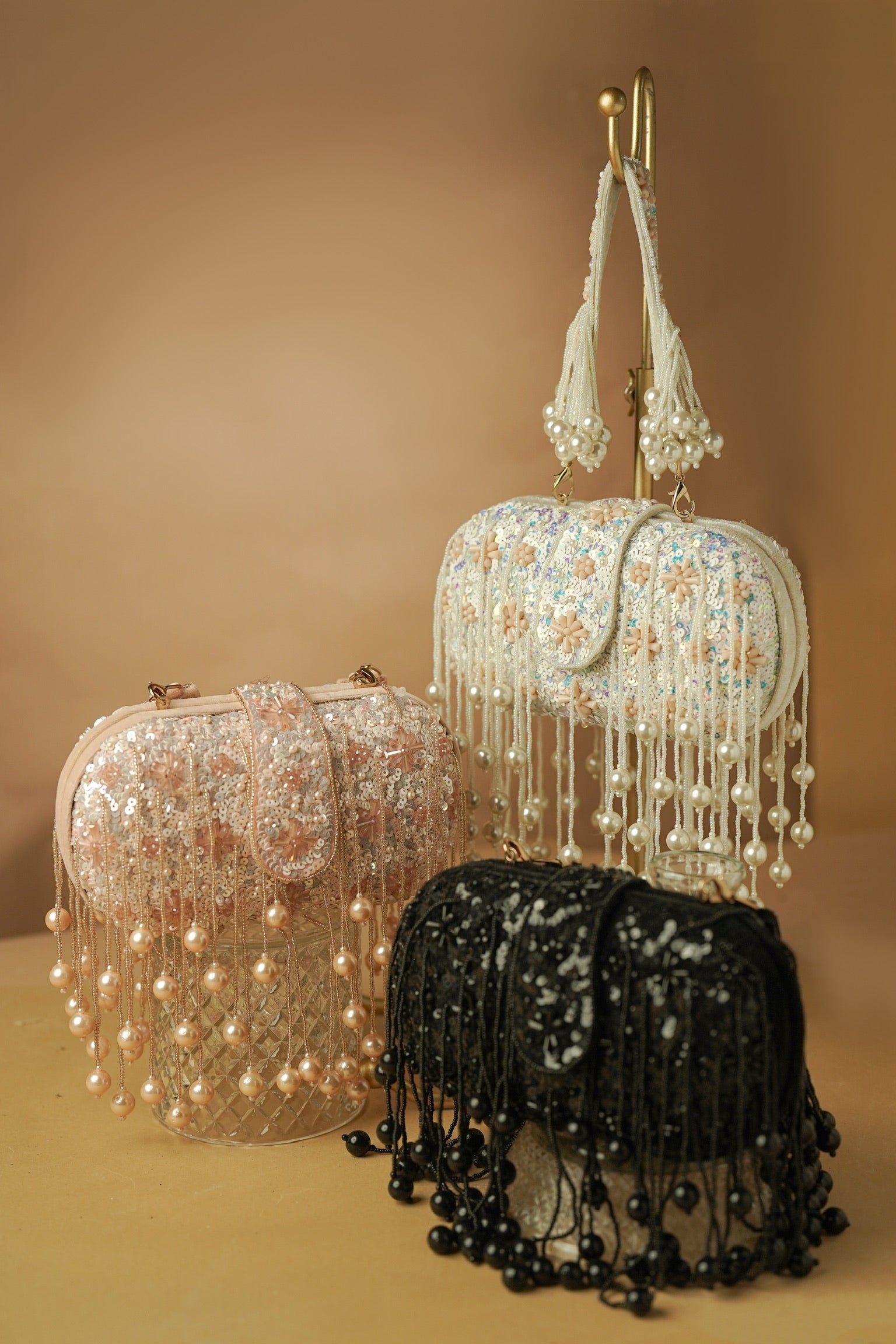 Our beaded bags are handcrafted with delicate embellishments and intricate detailing. Slight variations in bead placement, color, or finish are natural and reflect the unique, artisanal quality of each piece.