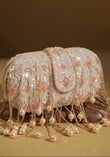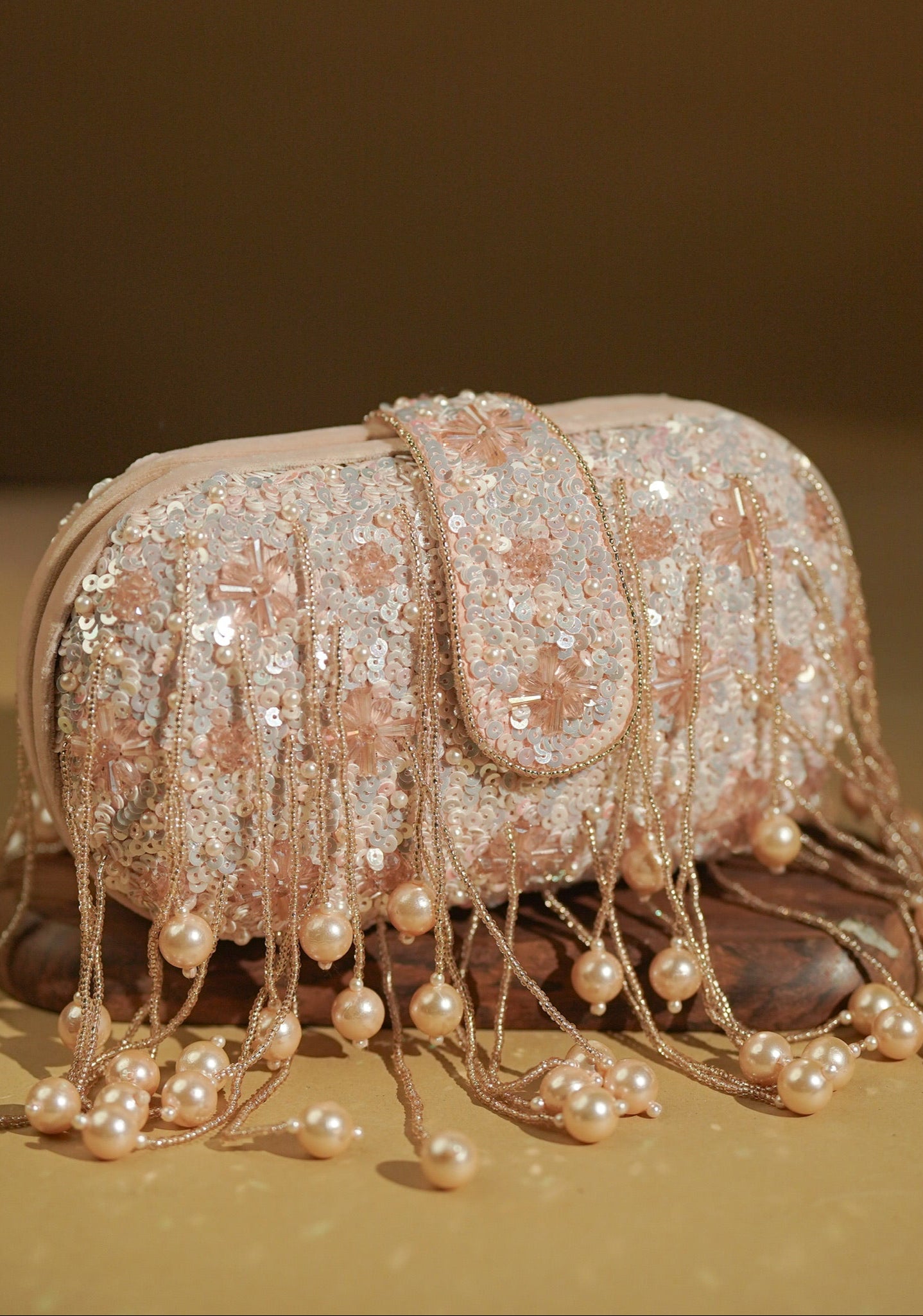 This oval-shaped Pink bag is adorned with shimmering floral beadwork, a braided handle, and cascading bead tassels that sway with every move. It's bold, opulent, and made for moonlit nights and high-impact entrances.