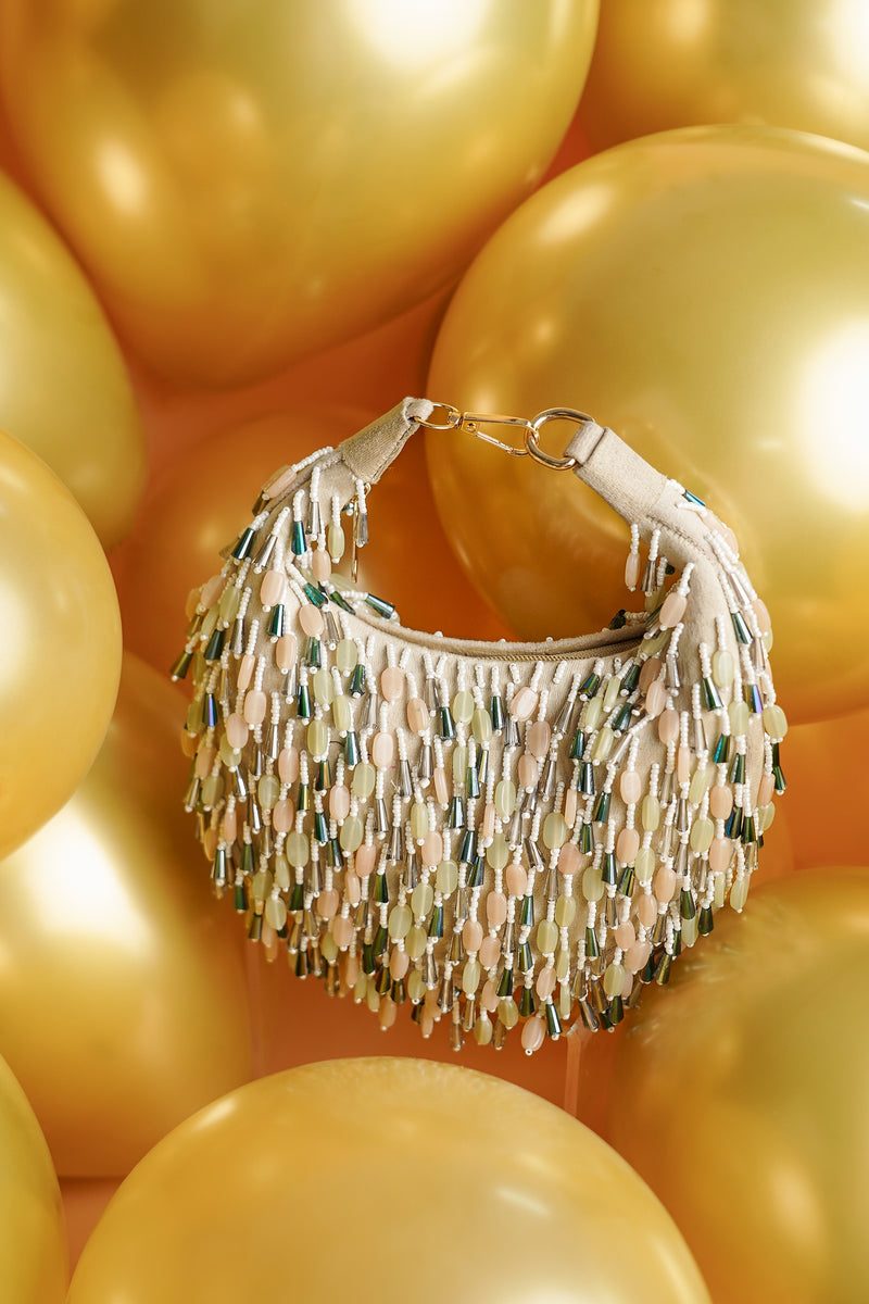 Our beaded bags are handcrafted with delicate embellishments and intricate detailing. Slight variations in bead placement, color, or finish are natural and reflect the unique, artisanal quality of each piece.
