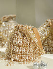 Handcrafted with intricate pearl and bead embellishments, our Zari bags exude timeless charm and understated luxury. Designed in rich festive tones with shimmering detailing, they perfectly complement both traditional and indo-western ensembles. Whether gifted to loved ones or carried to weddings and special gatherings, this curated set of 10 is created to add grace and elegance to every celebration.