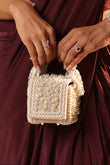 Meet The Dainty Pearl Clutch, a micro-sized masterpiece where craftsmanship meets minimalism. This elegant box clutch is scaled down to a charming size, ensuring you carry only your absolute essentials (card, key, lipstick) with effortless style. Handcrafted featuring delicate pearls and a subtle touch of micro pearls, The Dainty Pearl retains the premium quality and sleek structure of our larger collection.