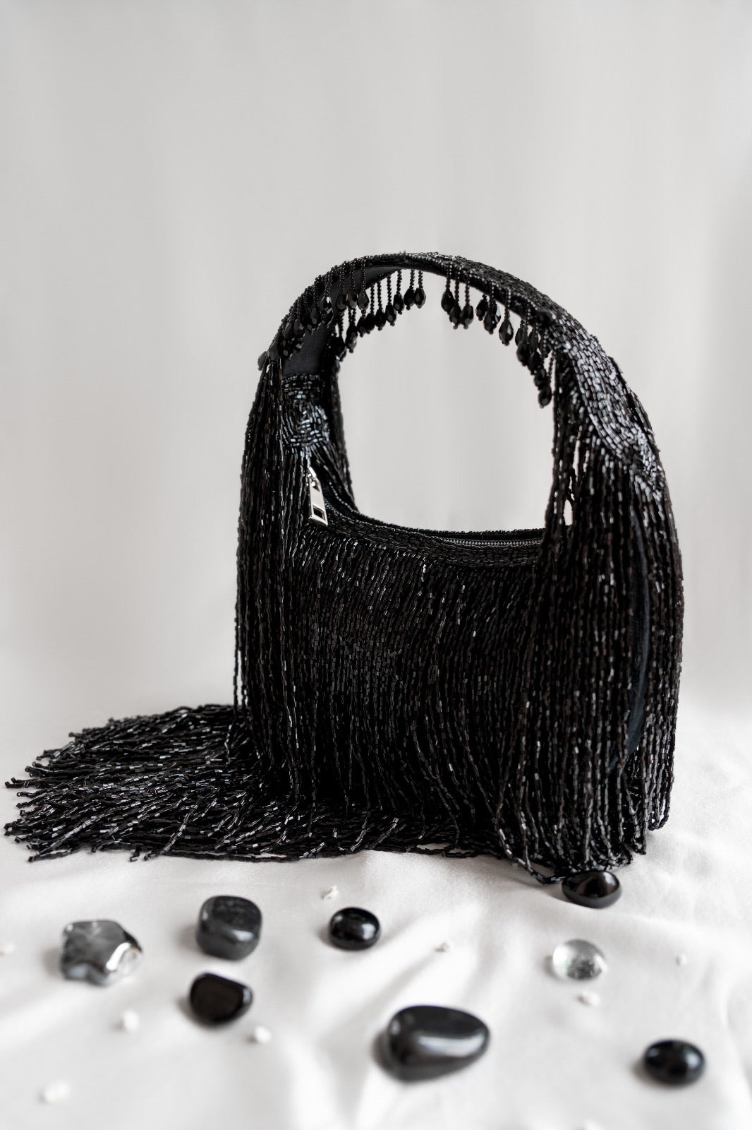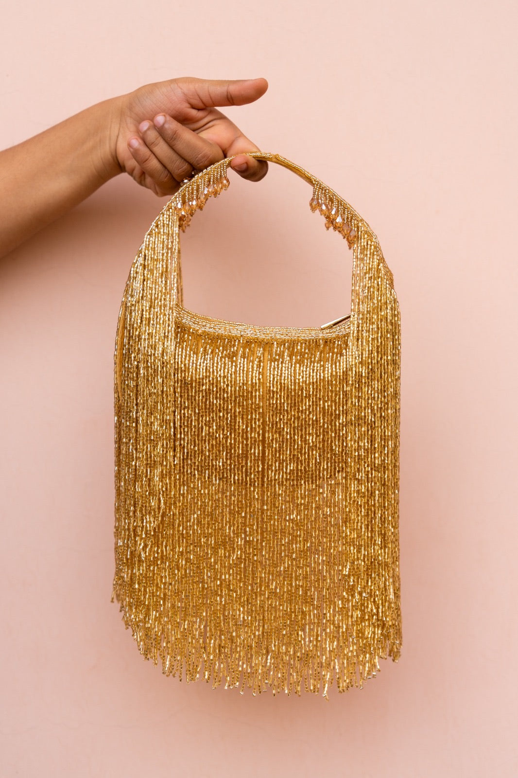 Our beaded bags are handcrafted with delicate embellishments and intricate detailing. Slight variations in bead placement, color, or finish are natural and reflect the unique, artisanal quality of each piece.