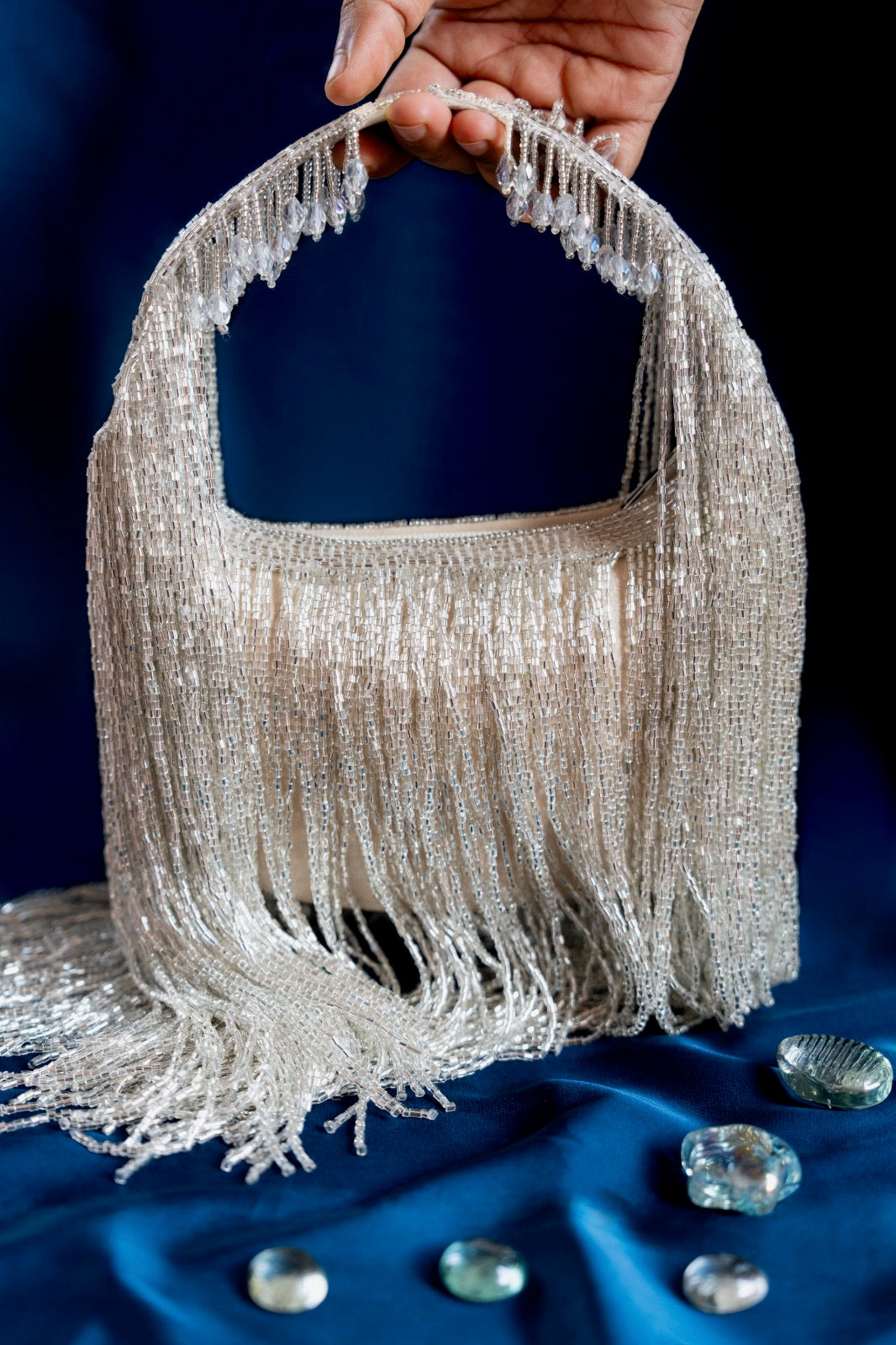 Our beaded bags are handcrafted with delicate embellishments and intricate detailing. Slight variations in bead placement, color, or finish are natural and reflect the unique, artisanal quality of each piece.